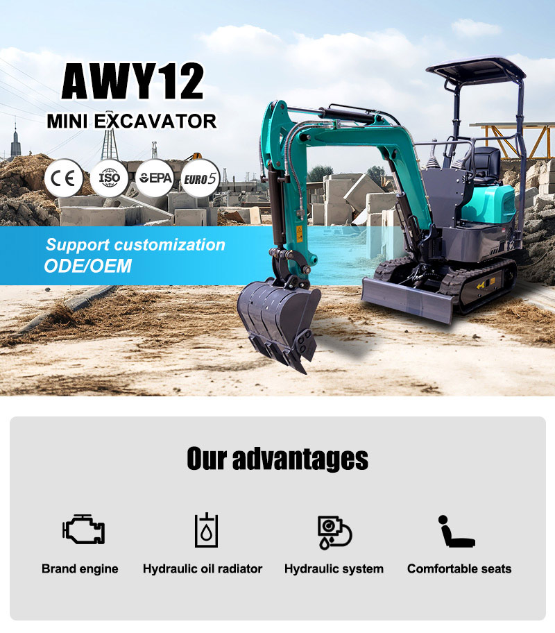 Aiweiya nueva excavadora con motor diésel, miniexcavadora doméstica de 1,2 toneladas